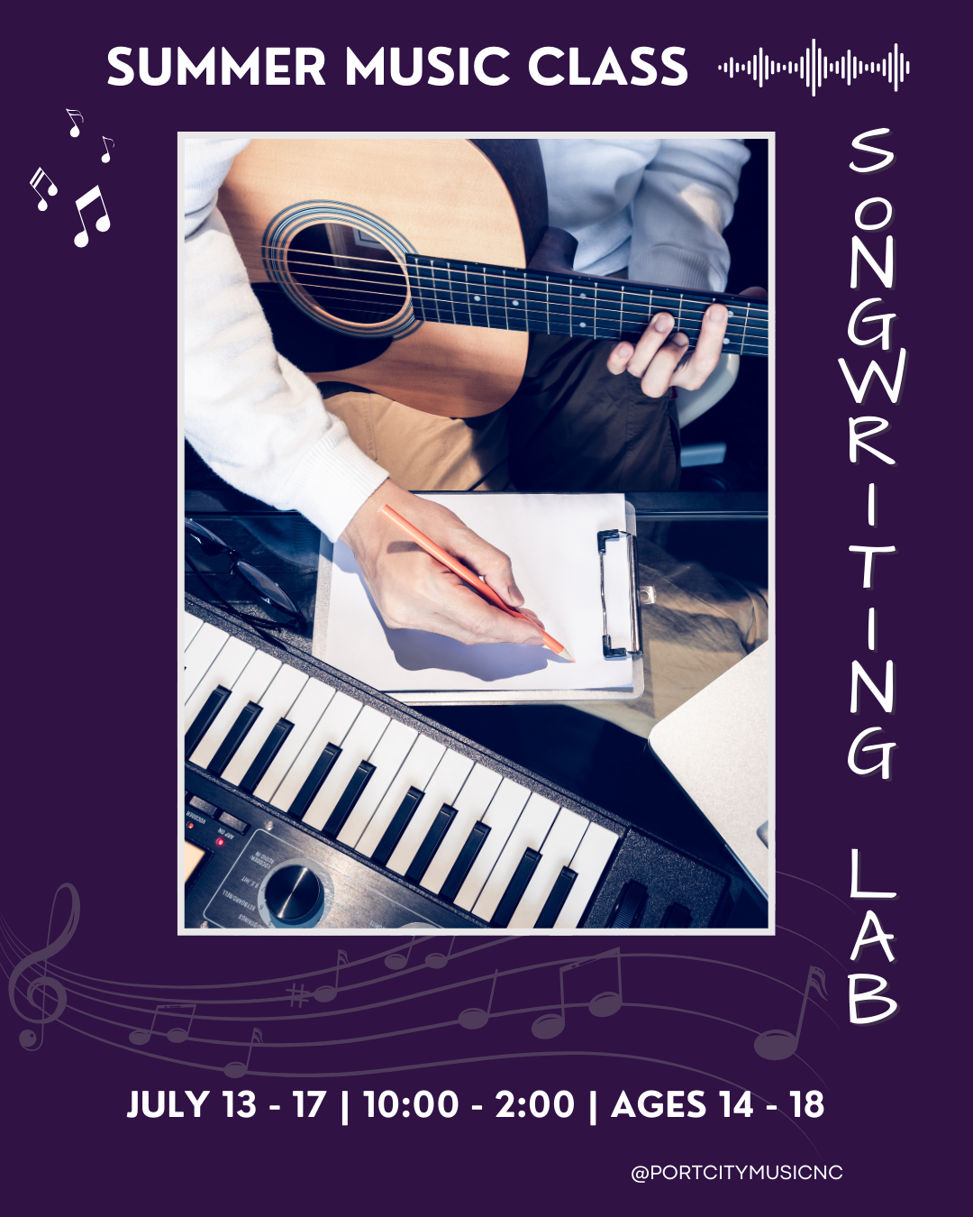 Alongside learning and practicing each new chord, students will dive into the craft of songwriting, constructing basic verse-chorus melodies and lyrics to accompany our 4-chord progression.